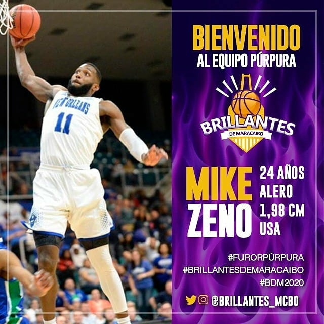 Nacido en Beaumont, Zeno es egresado de la Universidad de New Orleans, con los que registró 5.5 unidades, 3.1 rebotes, 1.4 asistencias y 34.8% de tiros de campo en 122 encuentros de la NCAA durante cuatro años (2014-2018). Zeno se reporta en los próximos días con el equipo Brillantes de Maracaibo.