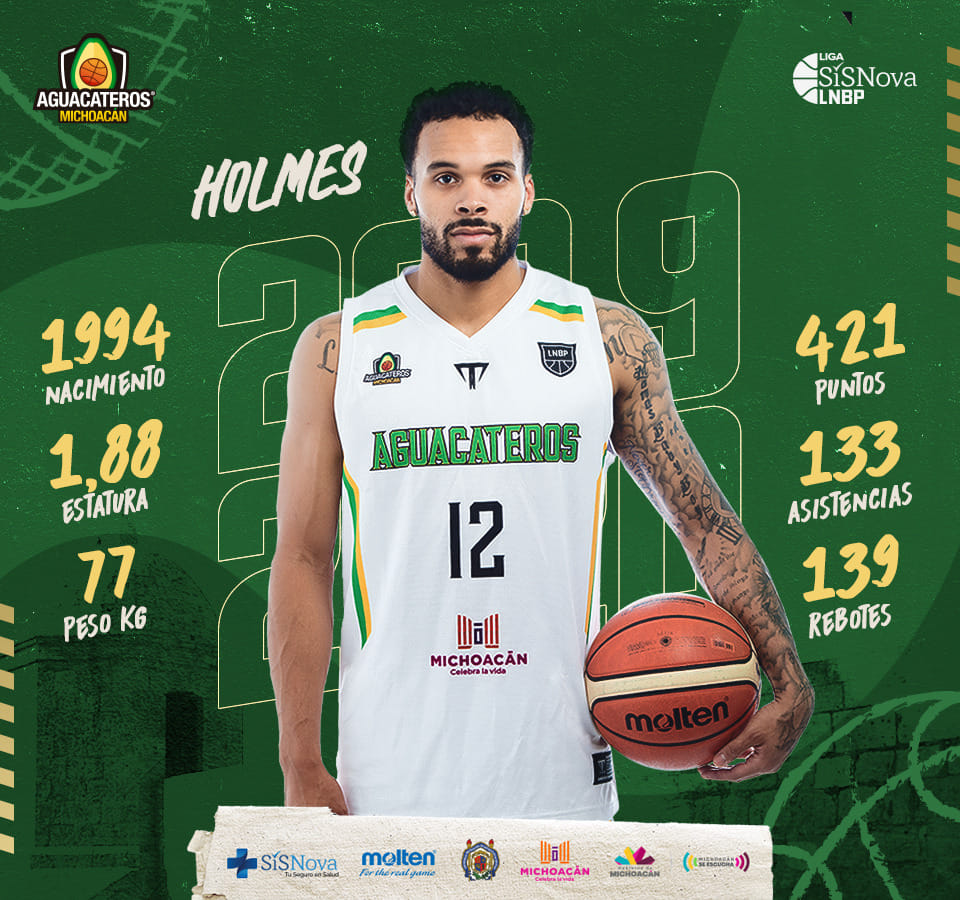 Mediante la guía de Nicolás Casalánguida, Holmes disputó 47 encuentros de la campaña y, de esos, pudo arrancar 25. Su estelaridad se mantuvo previo a la llegada del argentino Lucio Redivo, pero desde la banca también respondió como un buen revulsivo para mantener a flote la defensa y el ataque explosivo y veloz que caracterizo a Aguacateros en la serie de semifinales contra Capitanes de la Ciudad de México. Tal fue el caso que sus promedios no llegaron a ser realmente afectados y cerró el torneo con números de 9.3 puntos por partido, 3 rebotes, 2.8 asistencias y cerca de 1 robo.