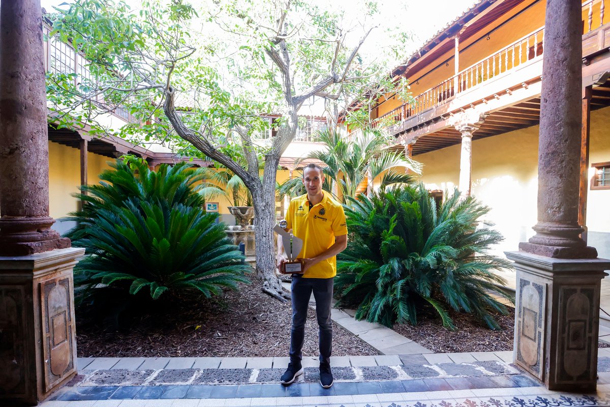 Huertas ha recibido el trofeo de manos de Rosario Prieto, delegada de la agencia EFE en Tenerife, en un acto celebrado en la Casa de los Capitanes de San Cristóbal de La Laguna. También han participado en el evento Félix Hernández, Presidente del CB Canarias, Idaira Afonso, Concejala de Deportes de La Laguna, y Joan Roca, Director de competición de la acb.