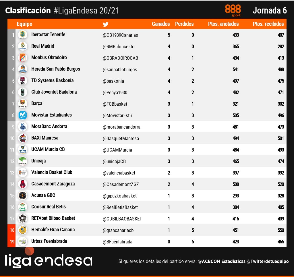 Un nuevo fin de semana de competición en la ACB y un nuevo fin de semana que no se puede completar la jornada al aplicarse el protocolo sanitario y tener que ser aplazado un partido, en este caso, el Bilbao-Real Madrid. En el resto de la jornada, los jugadores latinoamericanos estuvieron a buen nivel con Augusto Lima y Bruno Fitipaldo como los más destacados.