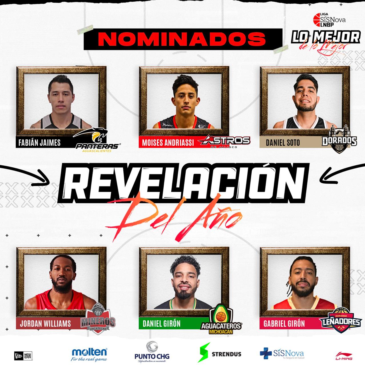 Daniel Girón (MICH): Tercer año consecutivo en que el jugador de Aguacateros es nominado a este reconocimiento. Hace dos años lo ganó bajo las órdenes de Ramón Díaz y hoy lo puede hacer como un sexto hombre interesante para Nicolás Casalánguida. No es claro si su trabajo deba ser aún reconocido como una revelación si ya es uno de los hombres más cumplidores de la liga.