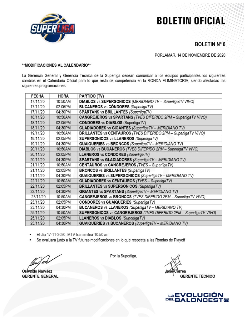 Mediante un boletín oficial emanado por la Superliga de baloncesto se dio a conocer una nueva modificación del calendario oficial, sin dar mayores explicaciones sobre las causas de tales movimientos les presentamos lo recibido.