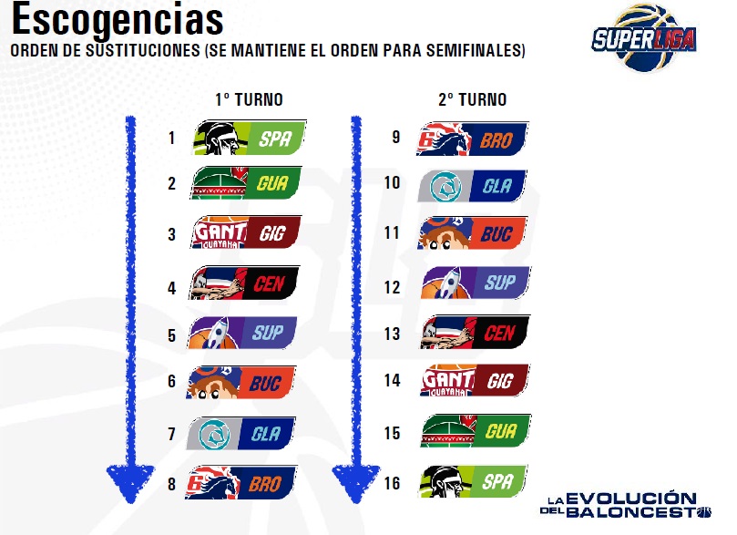 11.1. Las escogencias sólo se harán una vez que todos los equipos hayan clasificado a la serie de playoffs y final. Los equipos clasificados a playoffs tienen derecho de realizar dos (02) sustituciones.