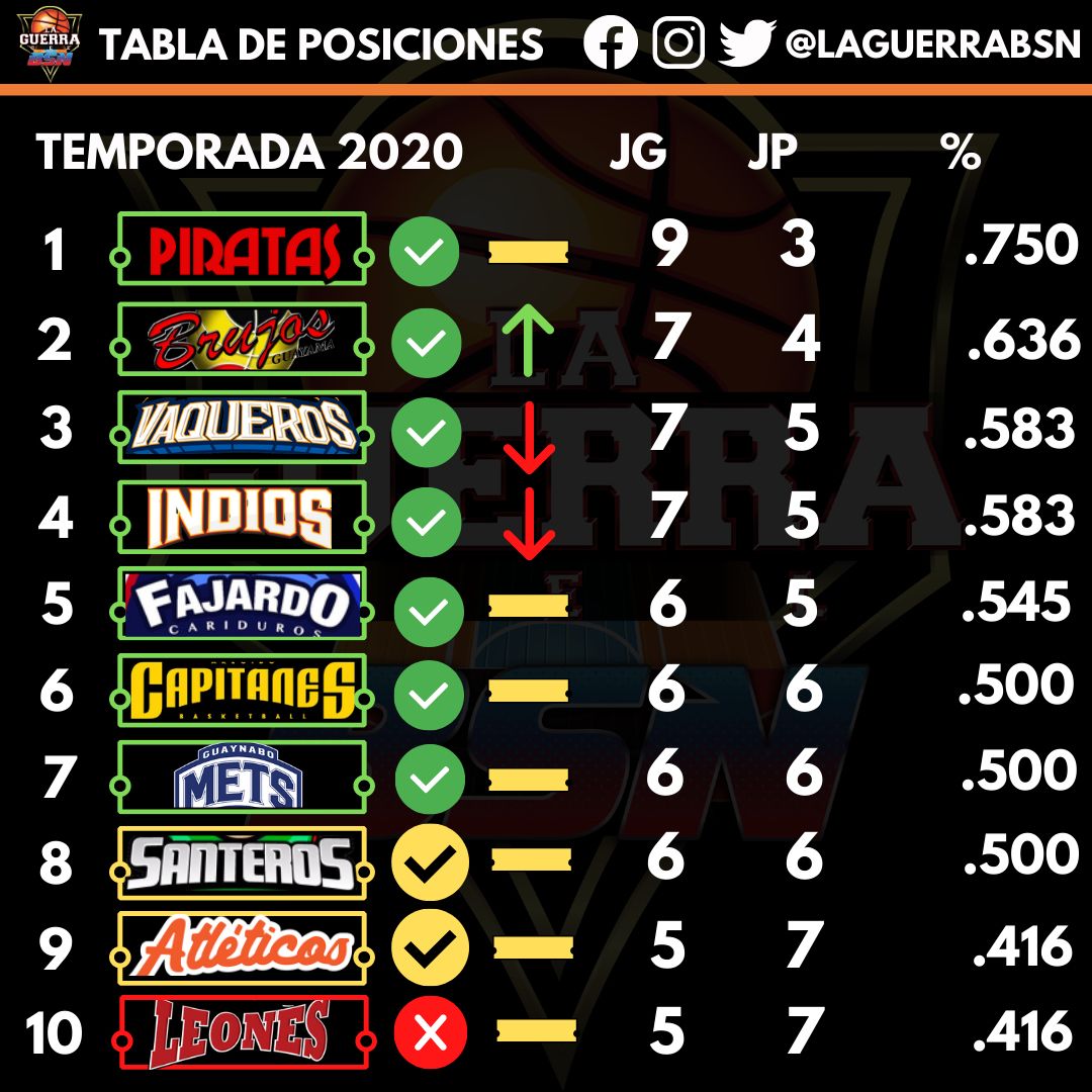 A Guayama le resta un partido por jugar de la temporada regular ante los Cariduros de Fajardo. El juego estaba pautado para realizarse ayer pero fue pospuesto por problemas de temperatura en el ballroom del hotel. El triunfo coloca el récord de Guayama en 7-4. Mientras los Piratas, líderes de la tabla de posiciones, ahora marchan con 9-3.