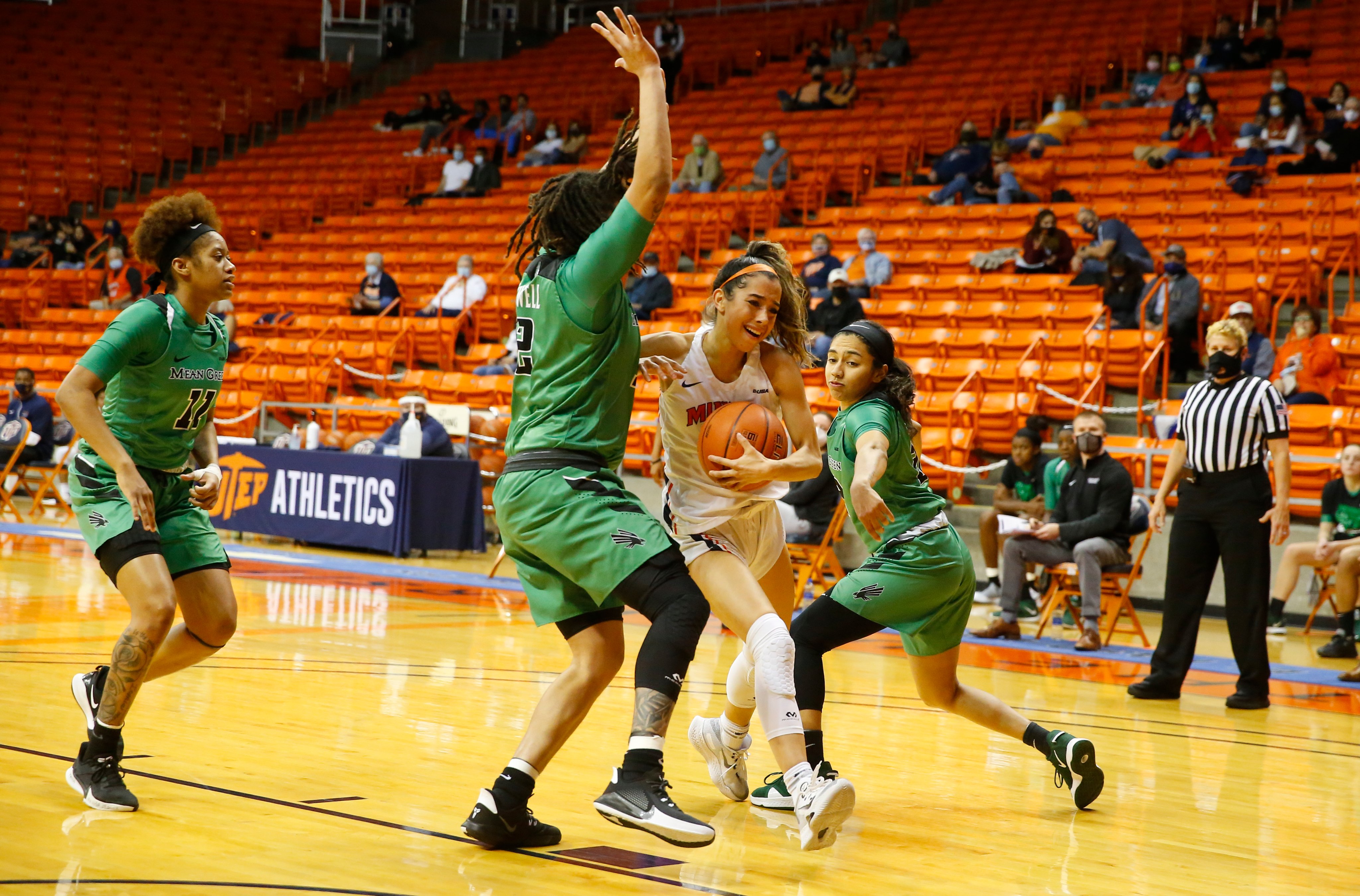 Como ha sido este ciclo, varios colegios llevan a cabo series los fines de semana para reducir los riesgos de contagios con menos traslados para los y las jugadoras. Por ello, el primer recorrido se disputó el viernes con gran exposición al trio de North Texas, quienes aprovecharon el arsenal de Quincy Noble y N’Yah Boyd para dejar varadas las herramientas de UTEP. Yendo atrás durante todo el encuentro, las locales cambiaron el liderato en la pizarra en un total de 19 ocasiones, mas la ventaja amplia nunca arribó y con una terrible cantidad de 18 entregas de balón terminaron por entregar el partido por marcador 59-67.