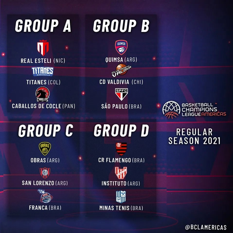 Por su parte, Minas Tênis Clube se suma al Grupo D junto con Flamengo (Brasil) e Instituto (Argentina). En la primera burbuja, en la ciudad de Río de Janeiro, Minas se enfrentará a Flamengo el miércoles 3 de febrero y a Instituto el jueves 4 de febrero. El partido restante será Flamengo-Instituto, el viernes 5.