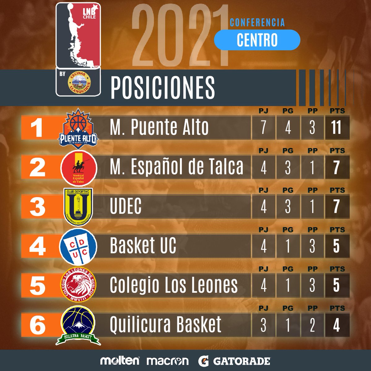 Puente Alto 101 – Universidad de Concepción 91. El equipo de Pablo Ares dejó al Campanil sin invicto en esta LNB Chile con una gran segunda parte. Nick Wadell fue el mejor de los locales con 33 puntos y 17 rebotes, seguido de los 24 puntos y 6 asistencias de Ricardo Armijo, mientras que los penquistas tuvieron a todo su quinteto inicial en doble dígito destacando los 21 puntos, 7 rebotes, 4 asistencias y 3/4 en triples de Diego Silva.
