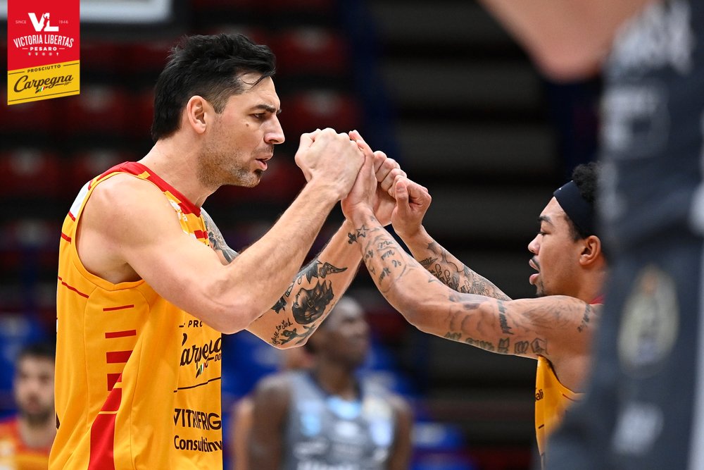 Carlos Delfino sufrió una lesión a los pocos minutos del partido ante la Virtus con claros gestos de dolor y recientemente se conoció que sufre una lesión en la fascia plantar del pie derecho. El alero argentino venía promediando 12.5 puntos, 4.3 rebotes y 2.4 asistencias, mientras que el Pesaro viene en la pelea por los puestos de playoffs con un balance de 10-14.