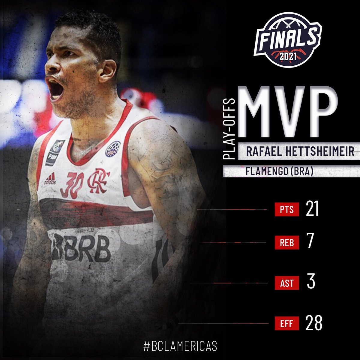 21 puntos, 7 rebotes, 3 asistencias y 3/7 en triples fueros sus números de la noche y su presencia en la pintura fue clave para Flamengo ante grandes pívots como Renaldo Balkman, Jeleel Akindele y Barthel López.