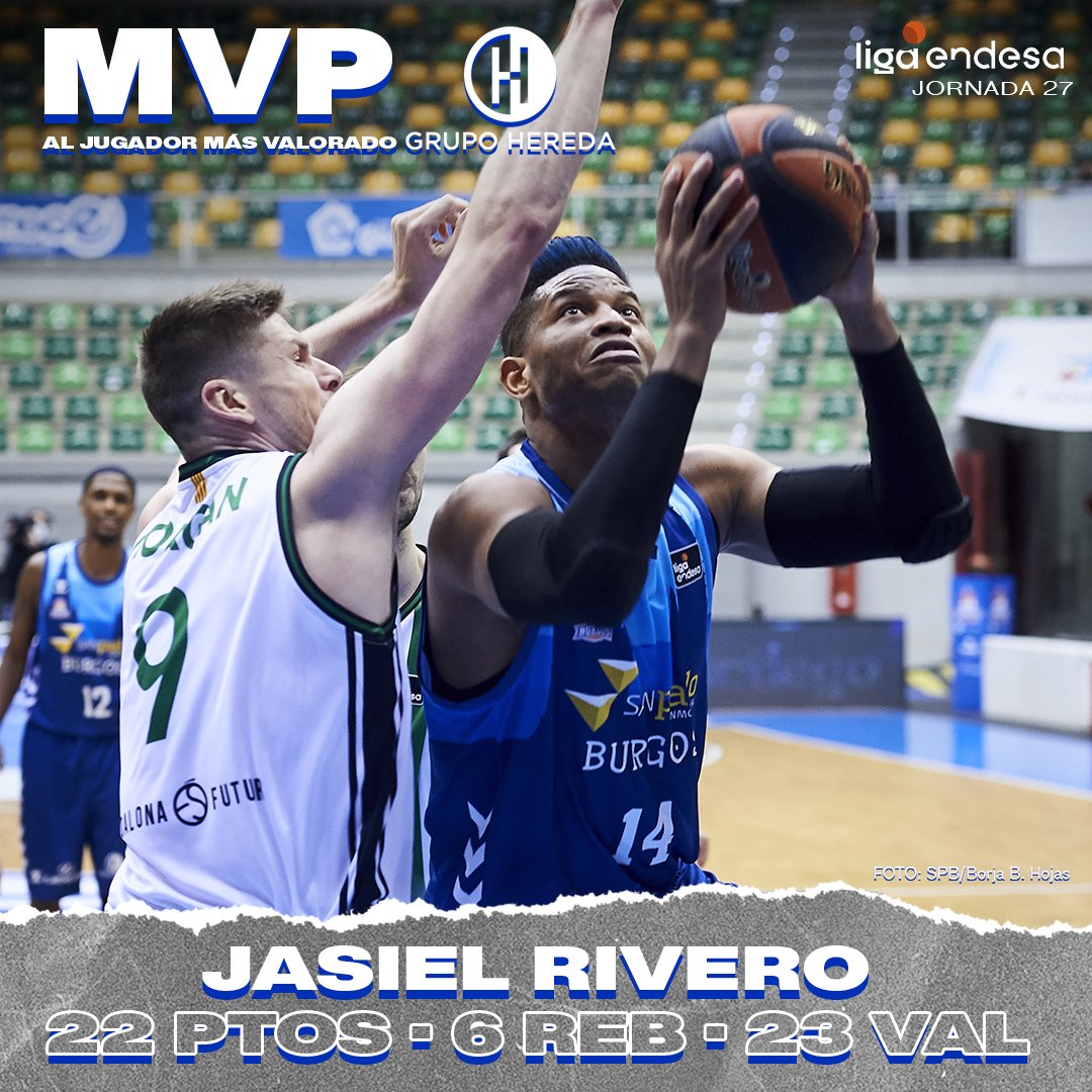 (Ala-pívot) JASIEL RIVERO: 22 puntos, 6 rebotes, 1 asistencia y 1 robo en el triunfo de San Pablo Burgos ante Joventut por 86-78