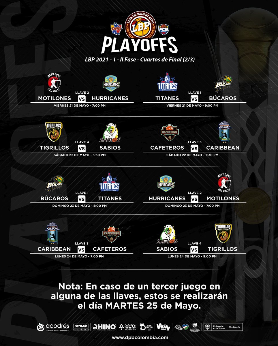 CAFETEROS (3º) VS CARIBBEAN STORM (6º): Me queda la sensación de que para Cafeteros los 9 juegos eliminatorios fueron la preparación para la ronda de playoffs, Hussein rotó largo, fue estricto y dejó en el banco a jugadores importantes, creo que esa filosofía cambiará un poco desde ahora, Cafeteros está potenciado han recibido en las últimas semanas a Rodrigo Caicedo y Andrés Ibarguen, y ahora deben comenzar a contar con Jhan Mejia, la mejor rotación criolla del evento.