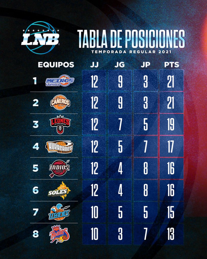 Huracanes 105 – Metros 97. Los puertoplatenses siguen en ascenso y suben a la cuarta plaza tras derrotar al líder de la clasificación. Los de José García completaron una gran primera parte, resistieron el gran tercer cuarto de Metros y realizaron un enorme cierre para quedarse con su quinto triunfo del torneo.