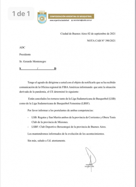 La noticia sobre la presunta suspensión de la Liga Sudamericana de Baloncesto está siendo reflejada en diversos portales de noticias que hacen vida en Argentina a partir de una carta fechada el 2 de Septiembre por la Confederación Argentina de Básquetbol sobre dicha suspensión e insta a los clubes Argentinos a estar atentos a la evolución de los acontecimientos.