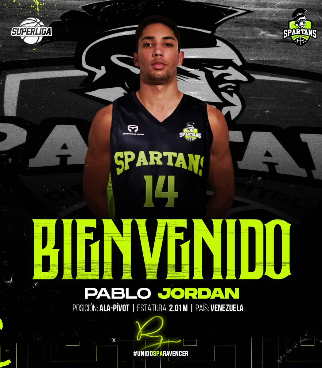 Spartans Distrito Capital anuncia la incorporación al equipo de Pablo Jordan, jugador de 19 años que firmó su primer contrato profesional con el conjunto capitalino de cara a la Copa Superliga Profesional de Baloncesto.