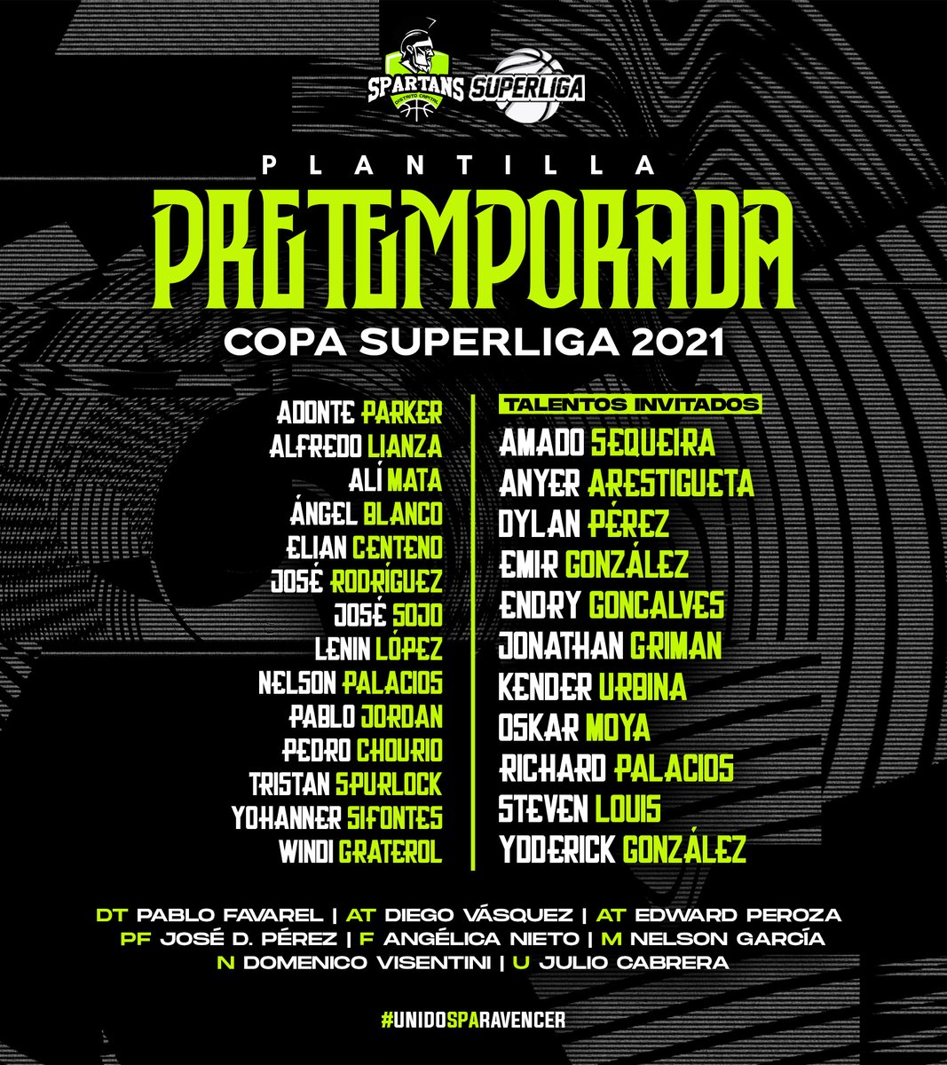 Este martes, Spartans Distrito Capital comenzará sus entrenamientos con miras a la primera edición de la Copa Superliga Profesional de Baloncesto. En el tabloncillo del Instituto Pedagógico de Caracas (IPC), 14 jugadores profesionales y 11 talentos invitados estarán bajo el mando del entrenador Pablo Favarel.