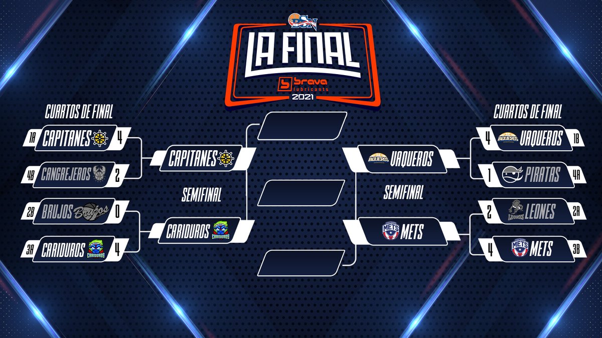¡Y las Semifinales están listas! Los Capitanes de Arecibo recibirán a los Cariduros de Fajardo desde este domingo, 24 de octubre, mientras que los Vaqueros de Bayamón recibirán a los Mets el lunes, 25 de octubre, ambos comenzando a las 8pm.