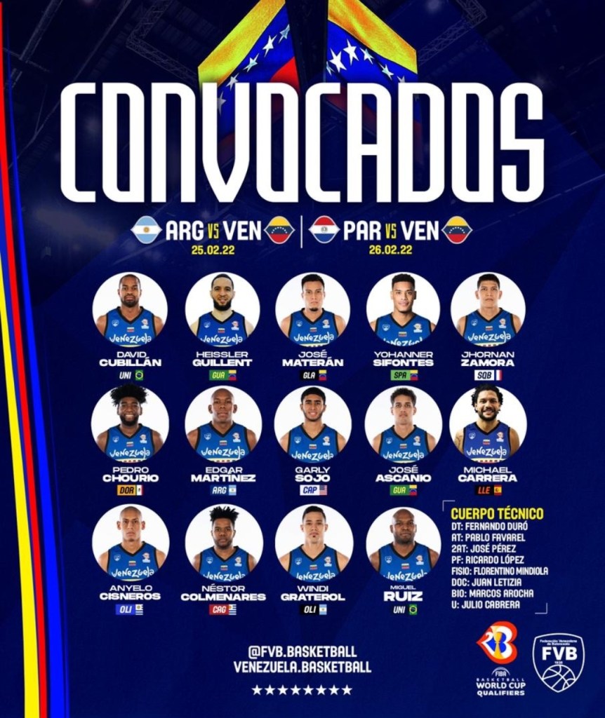 El combinado nacional enfrentará a Argentina y Paraguay los días 25 y 26 de febrero en el Estadio Obras Sanitarias. De los 14 llamados por el Coach Fernando Duro 10 están participando en varias ligas fuera de Venezuela.