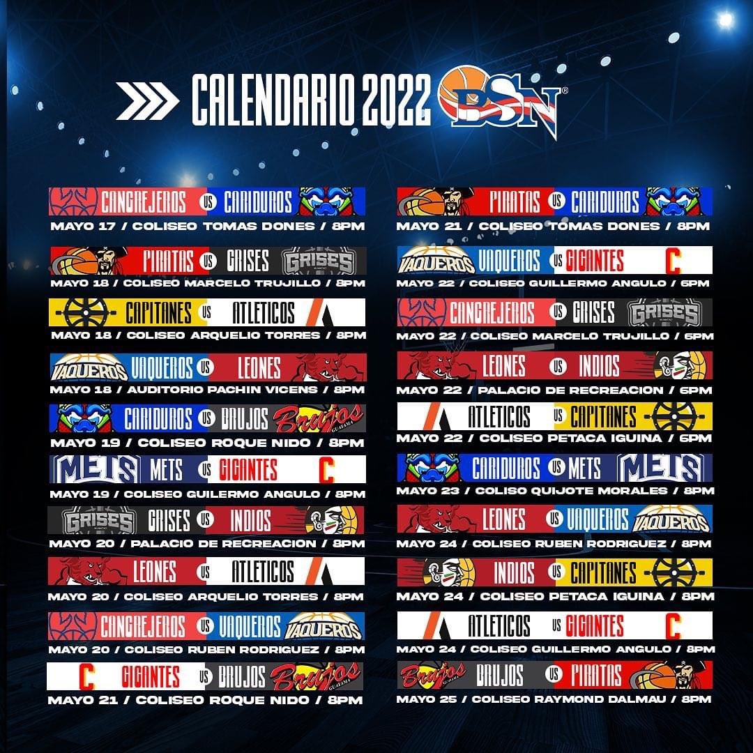 El Baloncesto Superior Nacional anunció el calendario de juegos para la temporada 2022 que comenzará el 9 de abril cuando los Piratas de Quebradillas visiten a los Gigantes de Carolina a las 8:00pm en el Coliseo Guillermo Ángulo en el regreso de los Sábados de BSN por Telemundo.