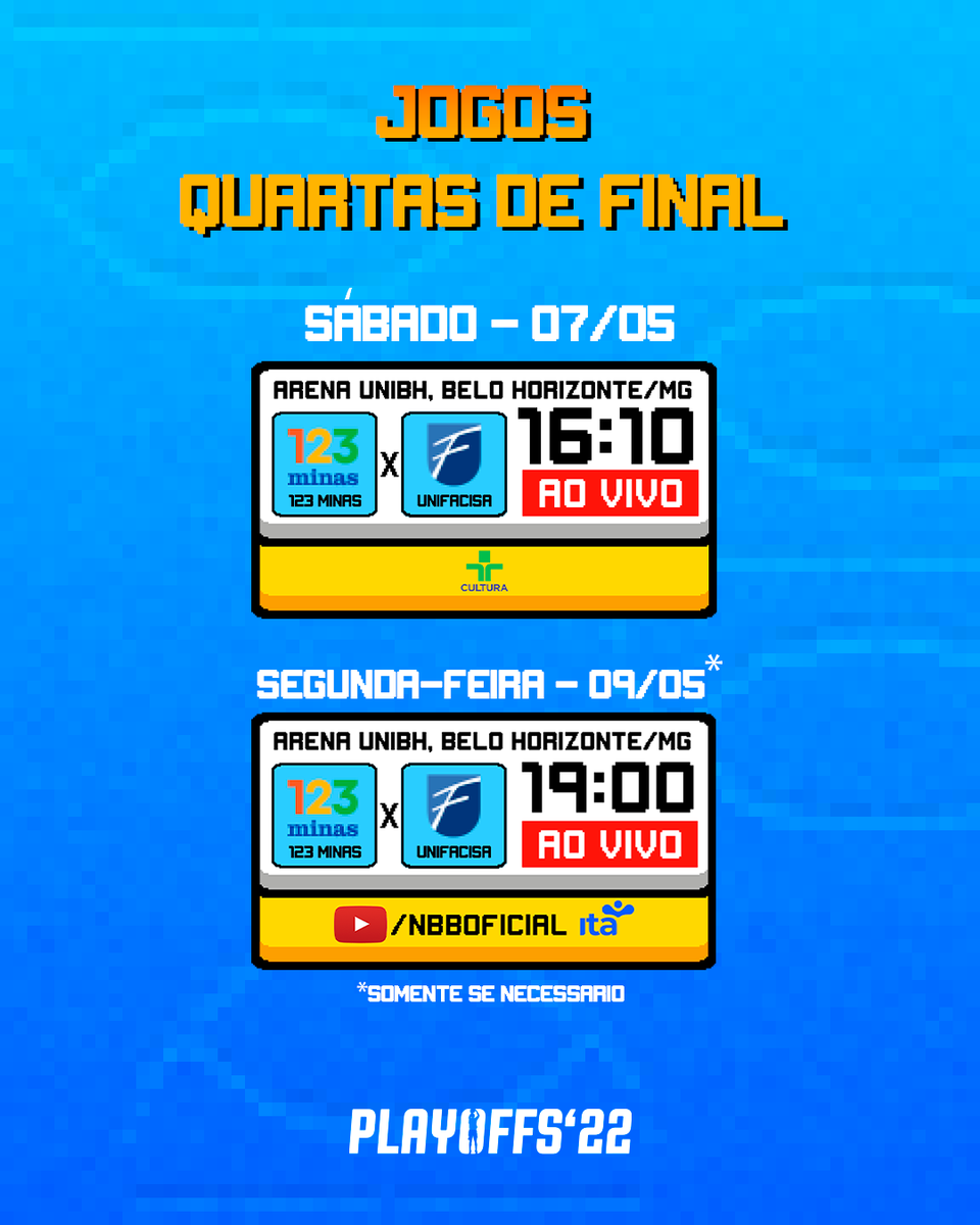 En la única serie por definir, Minas Tenis tiene ventaja 2-1 ante Unifacisa tras ganar ampliamente el primero por 85-65, caer en el segundo por 91-80 y completar una remontada espectacular en el tercero con un parcial de 14-36 en el último cuarto para terminar imponiéndose por 85-88. El próximo juego de la serie será el sábado a las 16:10.