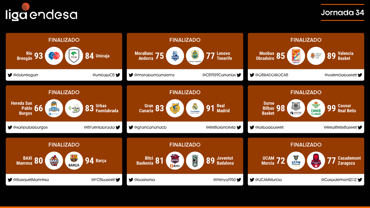 La última jornada de la fase regular de la Liga Endesa colocó a Andorra y San Pablo Burgos como equipos descendidos y a Gran Canaria como el dueño del último boleto a la postemporada. En cuanto a los latinoamericanos, Leo Meindl se quedó con el MVP latinoamericano de Cancha Latina para esta última fecha.