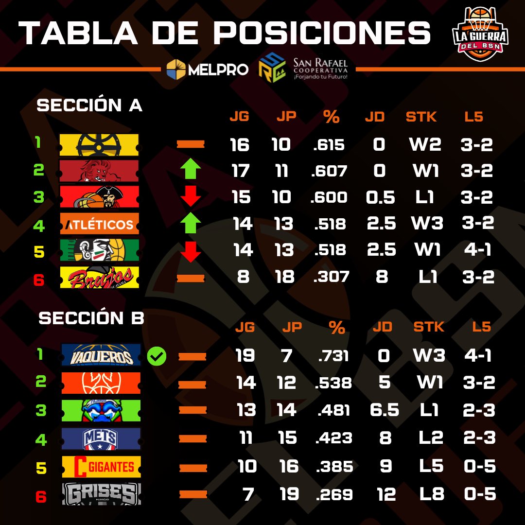 Los Vaqueros ya aseguraron su pase a la postemporada con marca de 19-7 en el primer puesto de la Sección B, mientras que los Gigantes juegan para 10-16 en la quinta posición de la Sección, un juego detrás de los Mets de Guaynabo.
