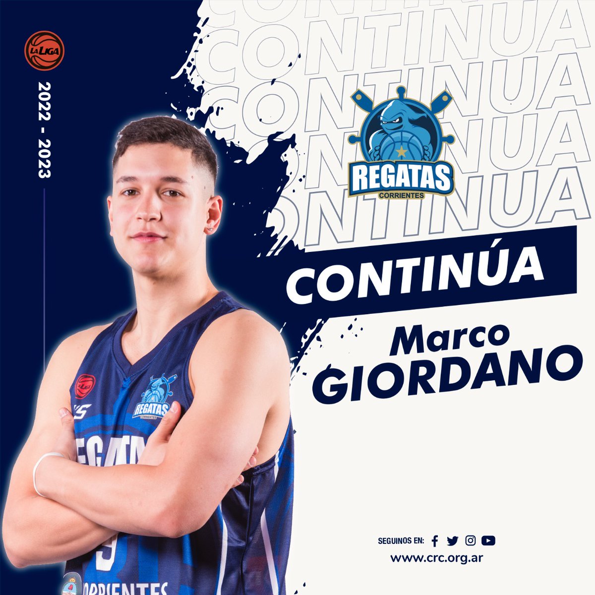 El joven base Marco Giordano y el Club de Regatas Corrientes continuarán enlazados por una temporada más durante la 2022/23 en lo más alto del básquet argentino.
