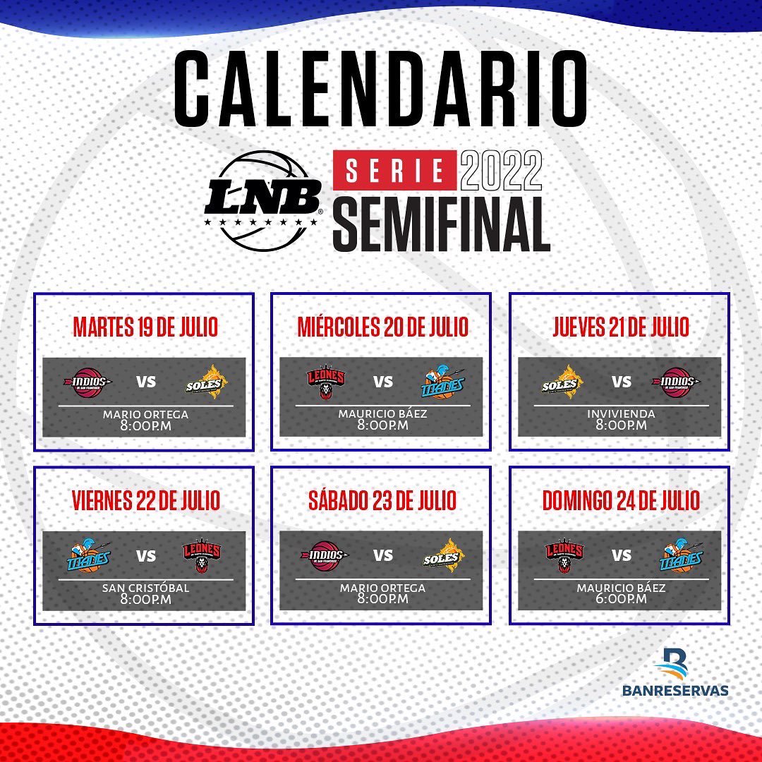 Con el encuentro de este martes entre los Indios de San Francisco de Macorís y los Soles de Santo Domingo Este en el pabellón Mario Ortega, arrancará la ronda semifinal de la Liga Nacional de Baloncesto (LNB).