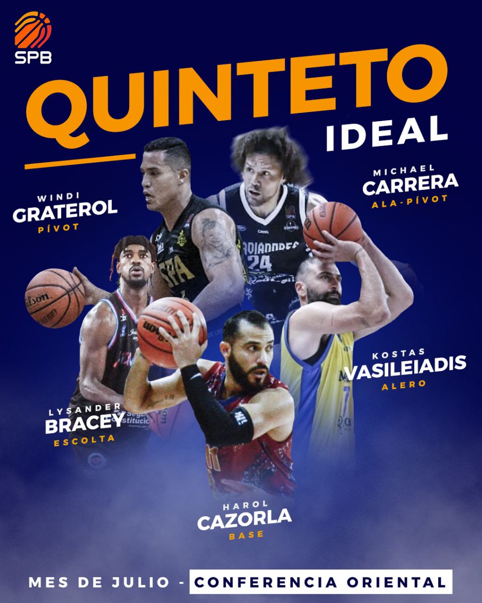 - Escolta: Lysander Bracey (Cangrejeros de Monagas), el norteamericano cerró julio con promedios de 17.5 puntos (octavo en la liga), 2.9 rebotes, 2.8 asistencias y 1.1 robos.