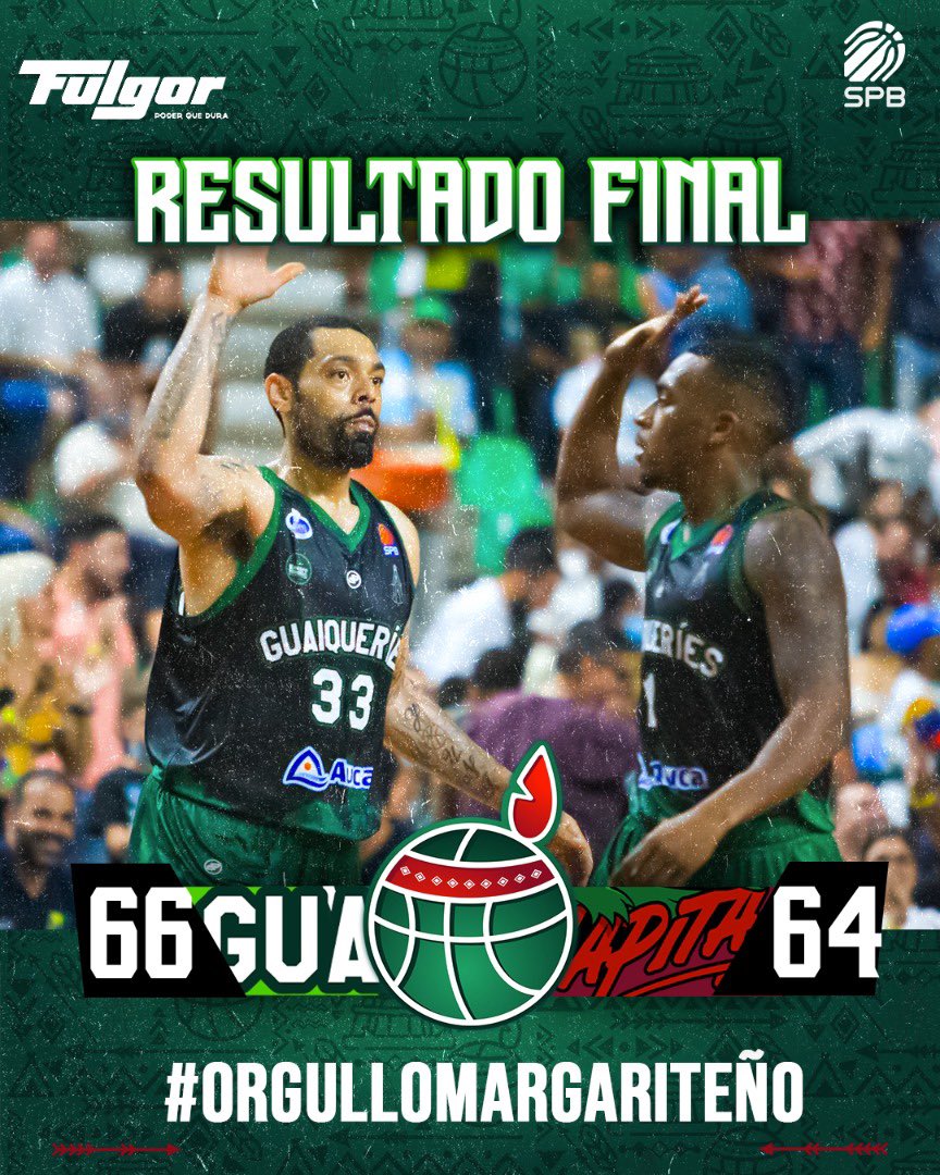 Emocionante cierre. El partido entraba al último minuto igualado, la buena defensa insular hacía perder el balón a los saurios. Con 37 segundos en el reloj Guaiqueríes iba por la victoria, Melvin Johnson consumía el tiempo y luego intentaba un triple que no entraba, Francisco Centeno tomaba el ofensivo, pero también fallaba, tras un entrevero en la pintura, la pelota le caía al más pequeño, José Sojo tomaba el balón y conseguía la cesta en suspensión que ponía la pizarra 66-64 con solo 15 segundos por jugarse. Cocodrilos tendría una última oportunidad, Gelvis Solano tomaba un triple sobre la marca y fallaba, para que los locales quedaran con el triunfo.