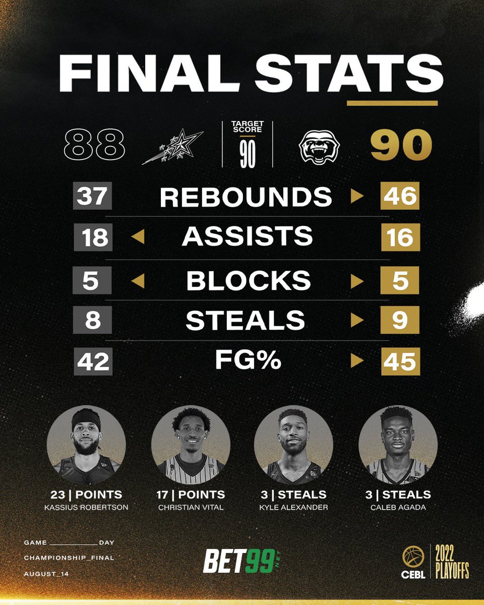 Christian Vital terminó con 17 puntos, 5 rebotes, 4 asistencias, 3 robos y 2 tapas y fue nombrado MVP de las finales. A la actuación del ex-raptor se sumaron los 16 puntos y 3 asistencias de Koby McEwan y los 15 puntos y 3 rebotes de Aaron Best. Por los subcampeones, Kassius Robertson fue la figura con 23 puntos, 6 rebotes, 5 asistencias y 4/4 en triples y Jalen Harris aportó 12 puntos, 4 rebotes, 4 asistencias y 2 robos.