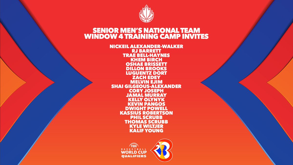 La selección norteamericana dio una lista de 15 jugadores que formarán parte del inicio de los entrenamientos de Canada Basketball para la cuarta ventana clasificatoria a la próxima cita mundialista.