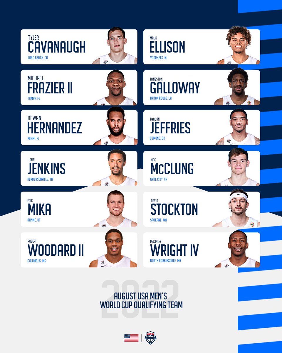 ESTADOS UNIDOS vuelve a presentar una selección sin estrellas rutilantes pero que siempre rinde y consigue sacar buenos resultados en estas ventanas. La lista de los dirigidos por Jim Boylen es la formada por los jugadores Tyler Cavanaugh, Malik Ellison, Michael Frazier II, Langston Galloway, Dewan Hernandez, DaQuan Jeffries, John Jenkins III, Mac McClung, Eric Mika, David Stockton, Robert Woodard y McKinley Wright.