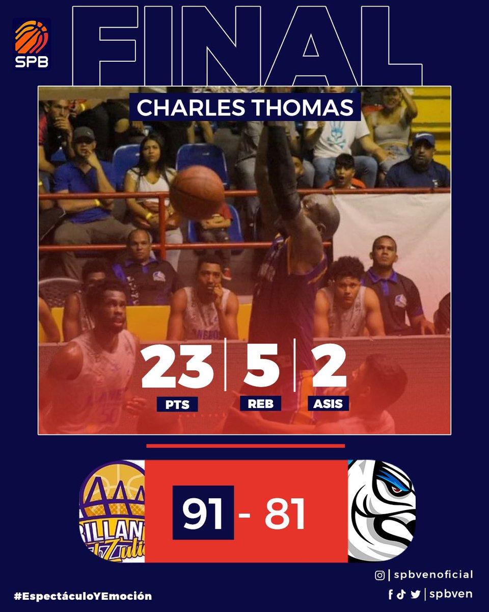 Brillantes del Zulia ejerció su fuerza como local para vencer a Llaneros de Guárico por marcador de 91 por 81 en el Gimnasio Cubierto Pedro Elías Belisario Aponte de Maracaibo, de la mano de una gran actuación ofensiva del importado Charles Thomas.