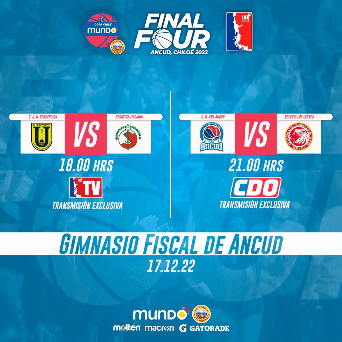UdeC, Sportiva Italiana, Colegio Los Leones y ABA Ancud serán los encargados de animar la fiesta del básquetbol a realizarse este fin de semana en el Gimnasio Fiscal de Ancud, donde cada equipo logró abrochar su pase a la final venciendo a su respectivo rival en las 4 llaves de play-offs.