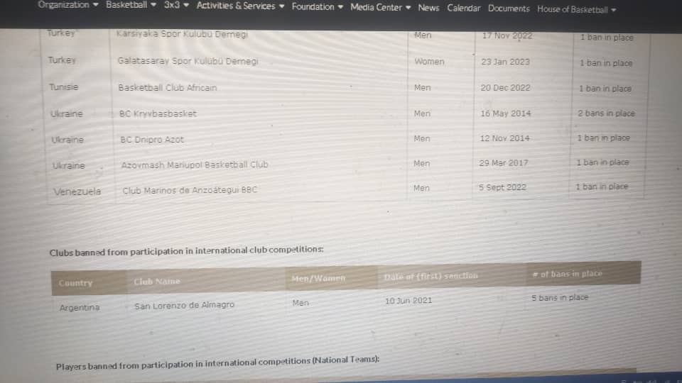 Tras el anuncio, fue consultada la página del BAT donde se pudo constatar que el equipo oriental tiene vigente una sanción ( 1 ban in place) de fecha 5 de septiembre 2022. Está sanción le impediría al equipo contratar jugadores Inscritos en el sistema FIBA. A continuación les mostramos la captura de pantalla cortesía del BAT.