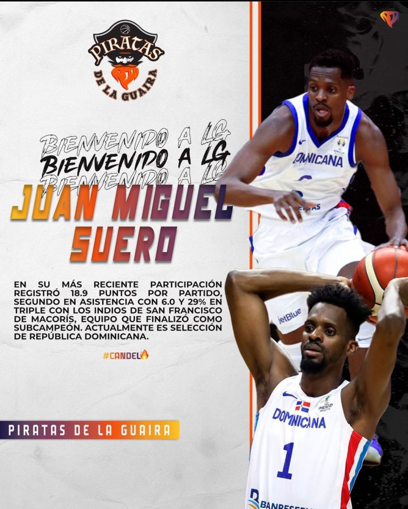 Juan Miguel Suero “El Fantasma” Nacido en Santo Domingo, República Dominicana, de 29 años, Altura 1,98, peso 84kg, este versátil jugador es Swingman, lo podremos ver jugar en las posiciones 3, 2 y 1. Debutó el 24 de Noviembre de 2014 con la franquicia Cocolos de San Pedro de Macorís de la Liga Nacional de Baloncesto de República Dominicana.