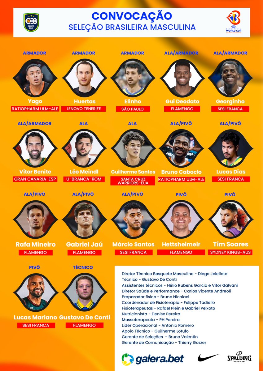 - Ala-pívots y pívots: Bruno Caboclo, Lucas Dias, Rafa Mineiro, Gabriel Jau, Marcio Santos, Rafael Hettsheimeir, Tim Soares y Lucas Mariano.