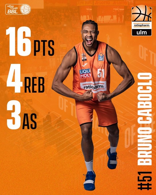 La dupla brasileña volvió a ser clave en un nuevo triunfo de Ratiopharm Ulm, que se impusieron por 62-82 al Wurzburg para alcanzar un balance de 11-10 y asentarse en la séptima plaza del torneo. Bruno Caboclo fue el mejor de los dos brasileños con 16 puntos, 4 rebotes, 3 asistencias, 3 robos y 3 tapones, mientras que Yago Mateus hizo 13 puntos, 6 rebotes, 4 asistencias y 3/5 en triples. Por el equipo bávaro, el chileno Nico Carvacho salió desde la banca para sumar 5 puntos, 2 rebotes y 1 robo.