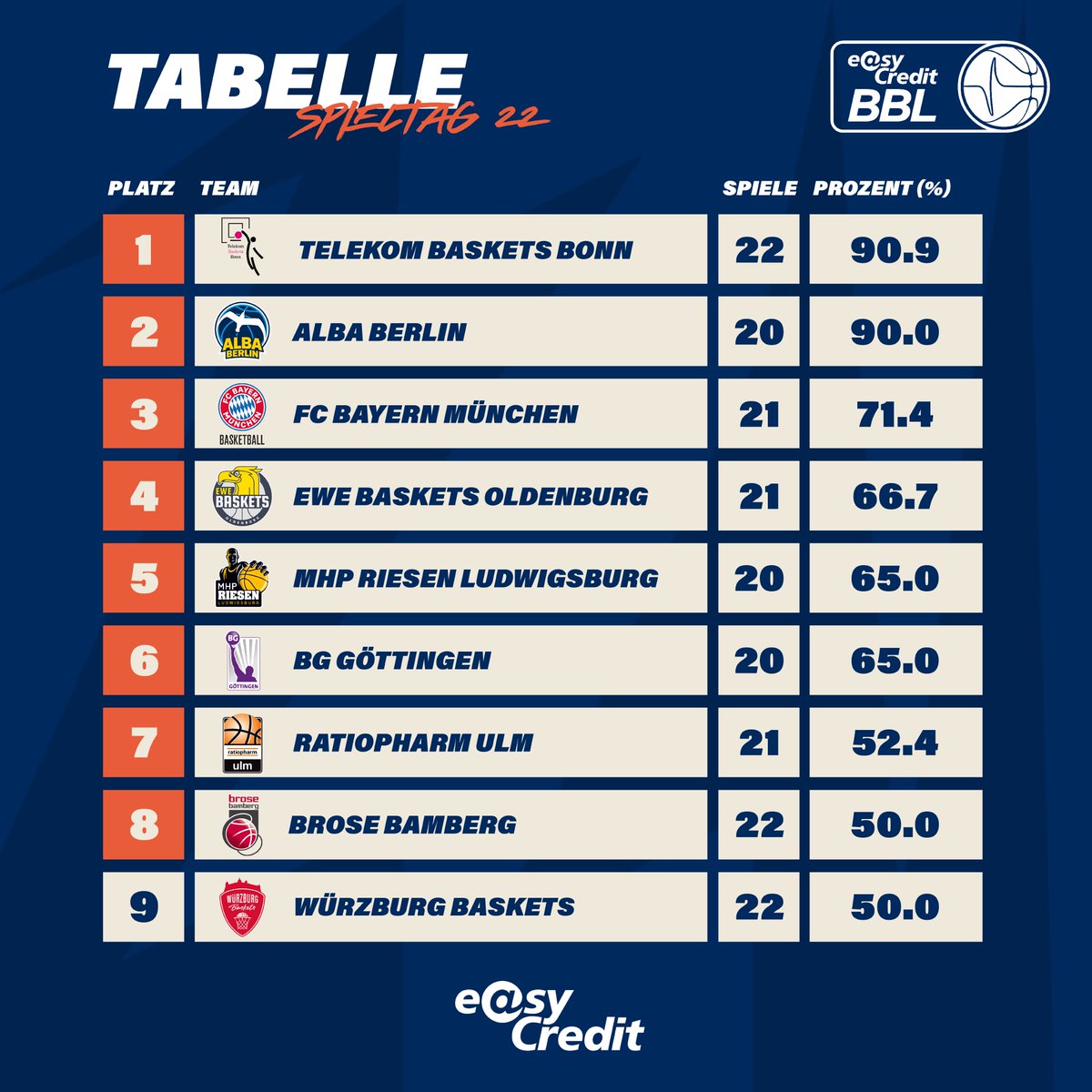 Una de las grandes victorias de esta fecha 22 fue la de Ludwinsburg ante Heidelberg por 111-87 y el internacional cubano Yorman Polas Bartolo fue el máximo anotador con 18 puntos, 2 rebotes y 2 asistencias.