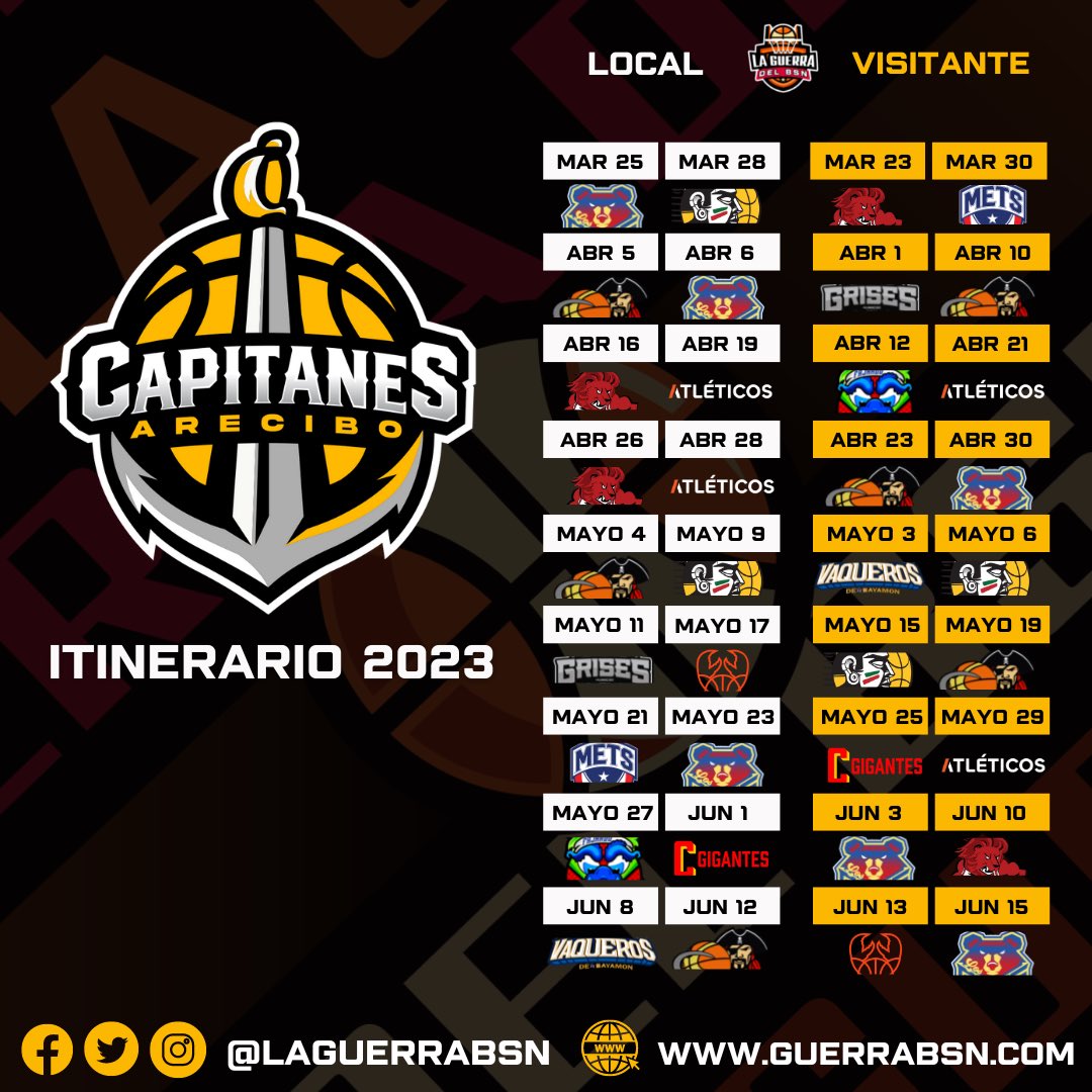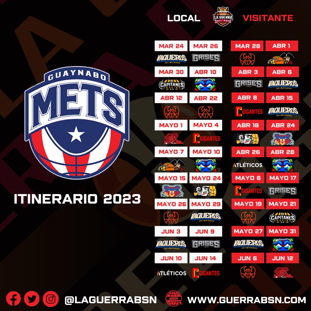 VAQUEROS DE BAYAMÓN: El vigente campeón del torneo quiere establecer como una dinastía tras lograr dos de los últimos tres campeonatos y así lo expresaron en la rueda de prensa de presentación del equipo. «Tenemos la oportunidad de empezar a crear una dinastía y se empieza con el back to back. Tenemos un gran equipo, hemos tenido adiciones que creemos que tienen la capacidad y el compromiso de ser parte de un equipo ganador. Ahí todo el mundo quiere ganar», explicó el renovado coach Nelson Colón