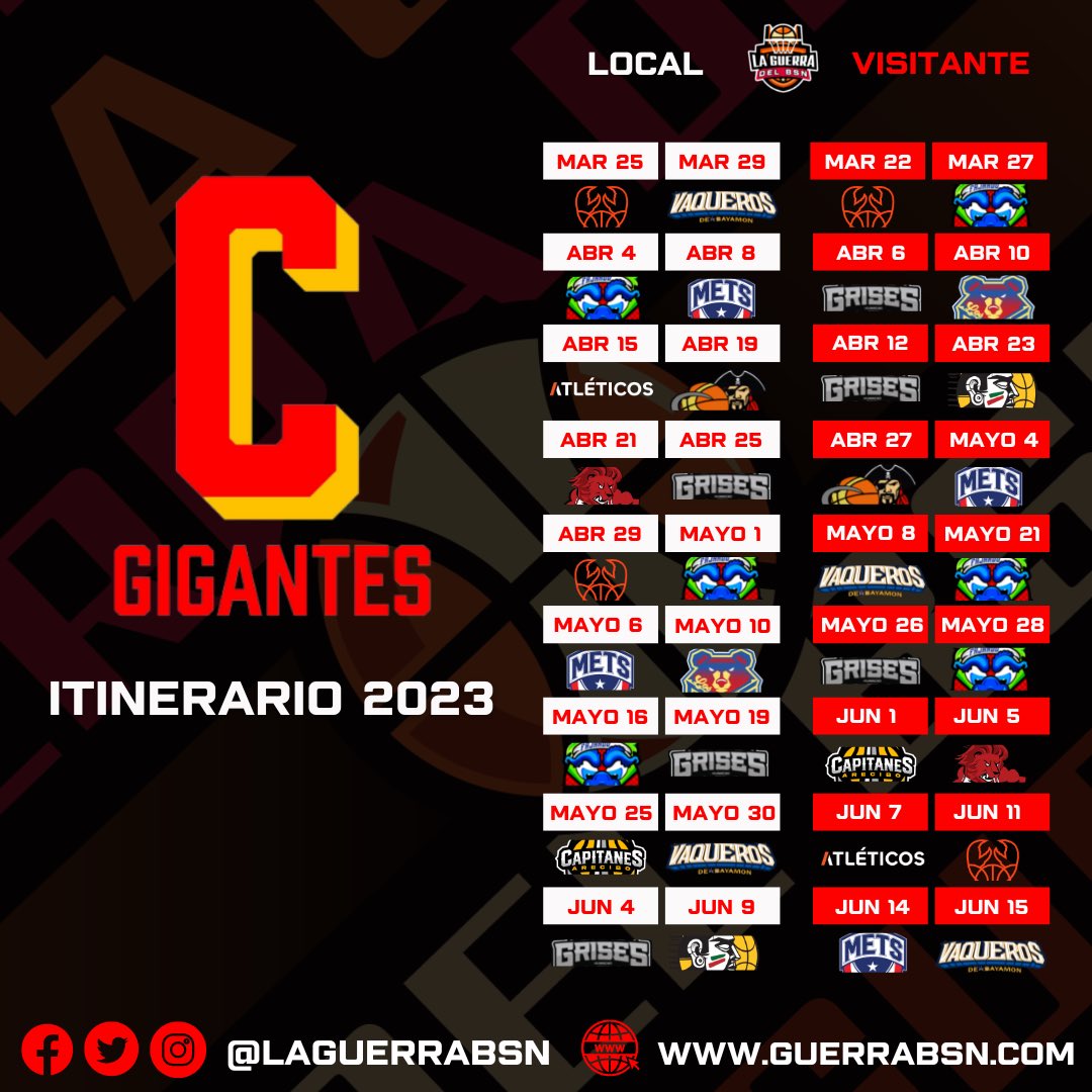 GIGANTES DE CAROLINA: El proyecto de la C quiere seguir creciendo y para ello contará con dos viejos conocidos como Filiberto Rivera y Alejandro «Bimbo» Carmona, únicos supervivientes de la última final que disputaron en 2008. A ellos se sumarán los refuerzos Sheldon Mac y Earl Clark y jugadores como Alexander Franklin, Jonathan García, Evander Ortiz, Isaiah Manderson y Jesús Cruz, mientras que tendrán que esperar a que sus estrellas Shabazz Napier, George Conditt y Tremont Waters terminen sus compromisos en Europa