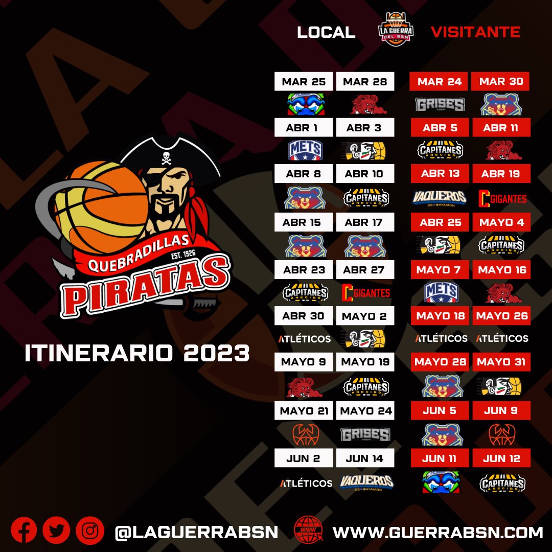 PIRATAS DE QUEBRADILLAS: Los del Guajataca tienen un nuevo timonel con la llegada del coach Pachy Cruz y se han reforzado con dos ex-NBA como Brandon Knight y Hassan Whiteside para formar un interesante Big Three junto a Phillip Wheeler para liderar a un roster con jugadores como Carlos Emory, Haanif Cheatham, Isaiah Piñeiro y las novedades de Melsahn Basabé y Tyquan Rolón.