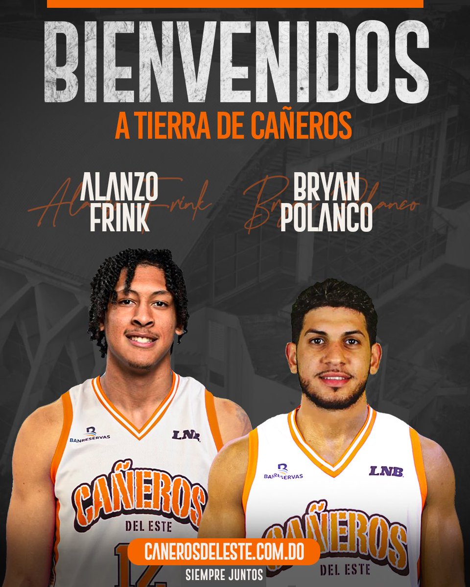 Los Cañeros del Este recibieron este miércoles desde los Reales de La Vega a los jugadores Alanzo Frink y Bryan Polanco con miras a seguir fortaleciendo el equipo de cara a la próxima temporada de la Liga Nacional de Baloncesto (LNB).