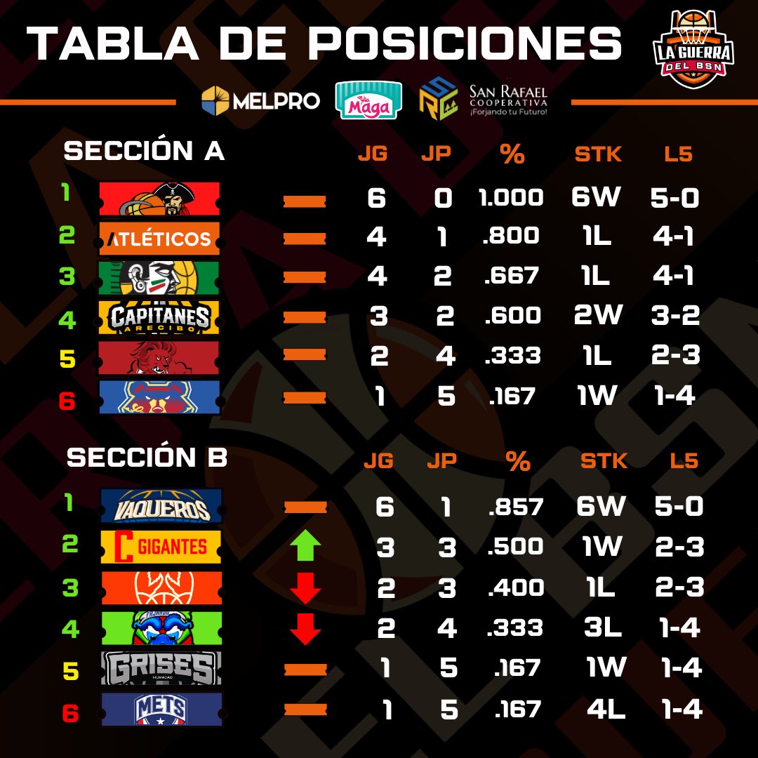 El martes en el BSN tuvo dos victorias locales con el triunfo de Vaqueros para seguir estirando su racha positiva y el triunfo de Gigantes defendiendo el Angulo.