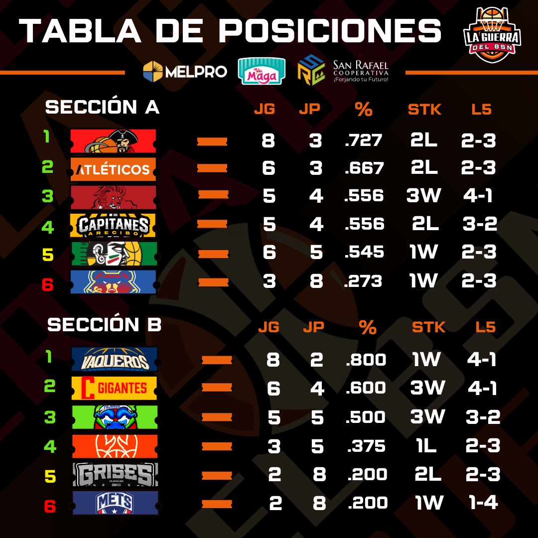 La acción en el BSN continúa este viernes con dos partidos en calendario: los Grises de Humacao (2-8) visitan a los Leones de Ponce (5-4), y los Cariduros de Fajardo (5-5) y Cangrejeros de Santurce (3-5) se miden en el Coliseo Roberto Clemente.