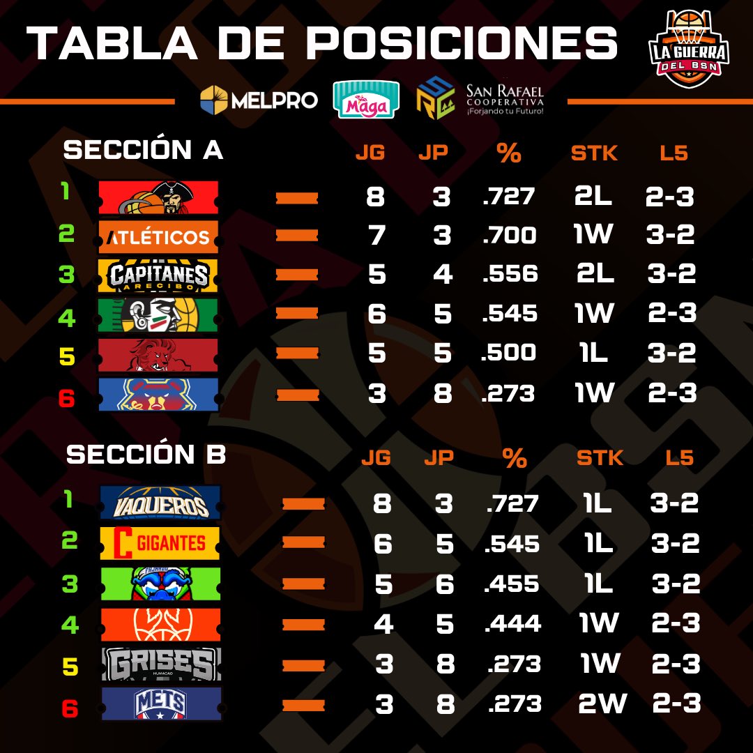 El BSN sigue este domingo con tres partidos en calendario para las 6pm: los Indios de Mayagüez (6-5) buscan una tercera victoria al hilo cuando visitan a los Cangrejeros de Santurce (4-5), los Grises de Humacao (3-8) se miden ante los Cariduros de Fajardo (5-6), y los Leones de Ponce (5-5) juegan en Arecibo ante unos Capitanes (5-4) que buscan evitar una tercera derrota consecutiva.