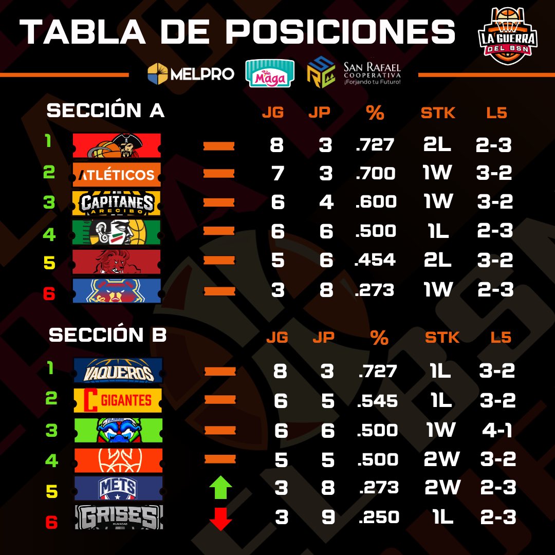 Finalmente, los Capitanes de Arecibo también regresan a la ruta ganadora con una amplia victoria sobre los Leones de Ponce con un marcador final de 99 a 80 en un partido que se llevó a cabo en el Coliseo Manuel Petaca obteniendo su sexta victoria de la temporada mientras que los Leones obtienen su sexra derrota de la temporada sufriendo su segunda al hilo. El ex MVP, Pariss Bass fue el mejor por parte de los Capitanes anotando 20 puntos junto a 15 rebotes, en causa perdida, Jezreel de Jesús terminó con 18 puntos y 3 asistencias en la derrota.