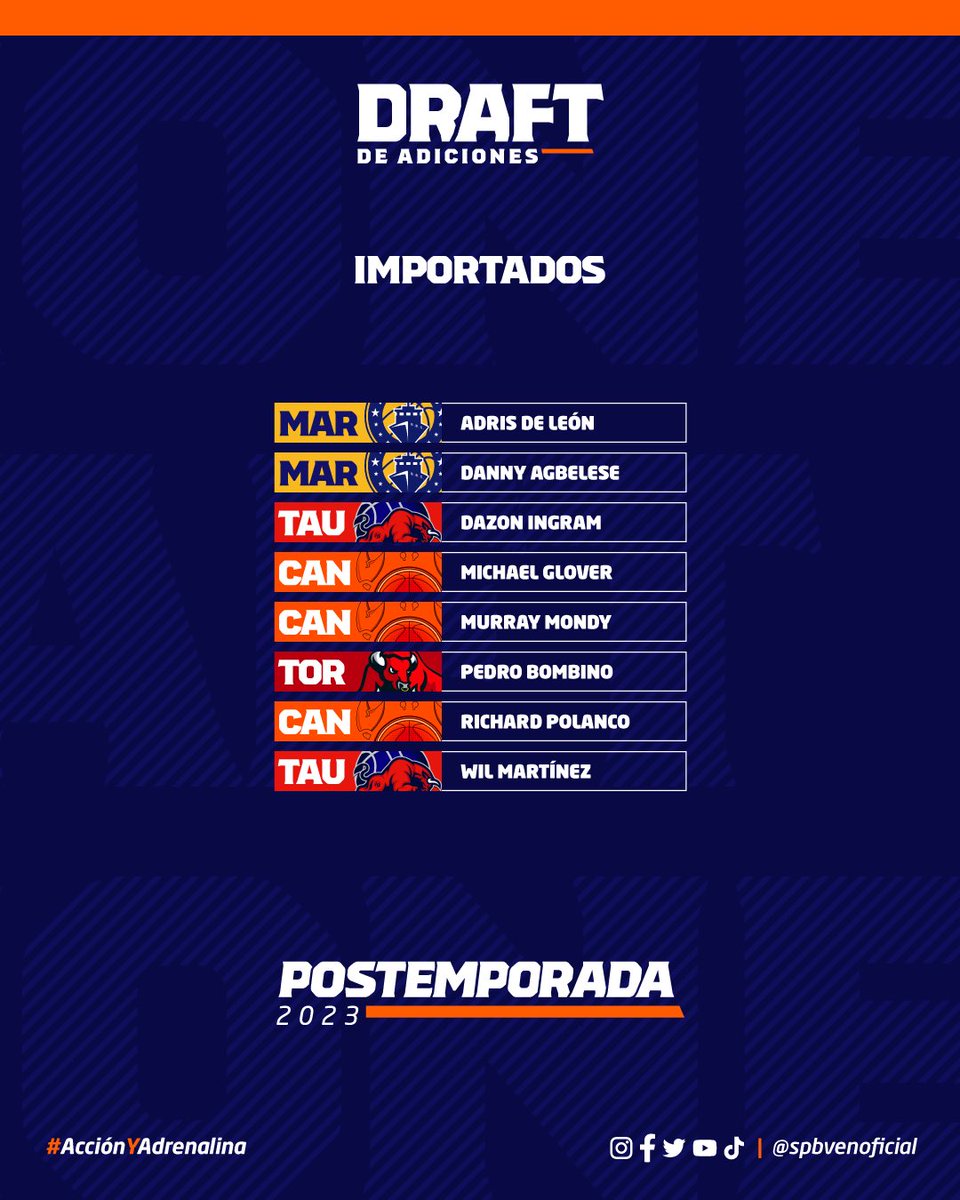 La SPB dio a conocer a los jugadores elegibles en el draft de los octavos de final que se realizará este lunes 22 de mayo y donde cada equipo clasificado podrá elegir como adición a un jugador criollo o a un jugador importado.