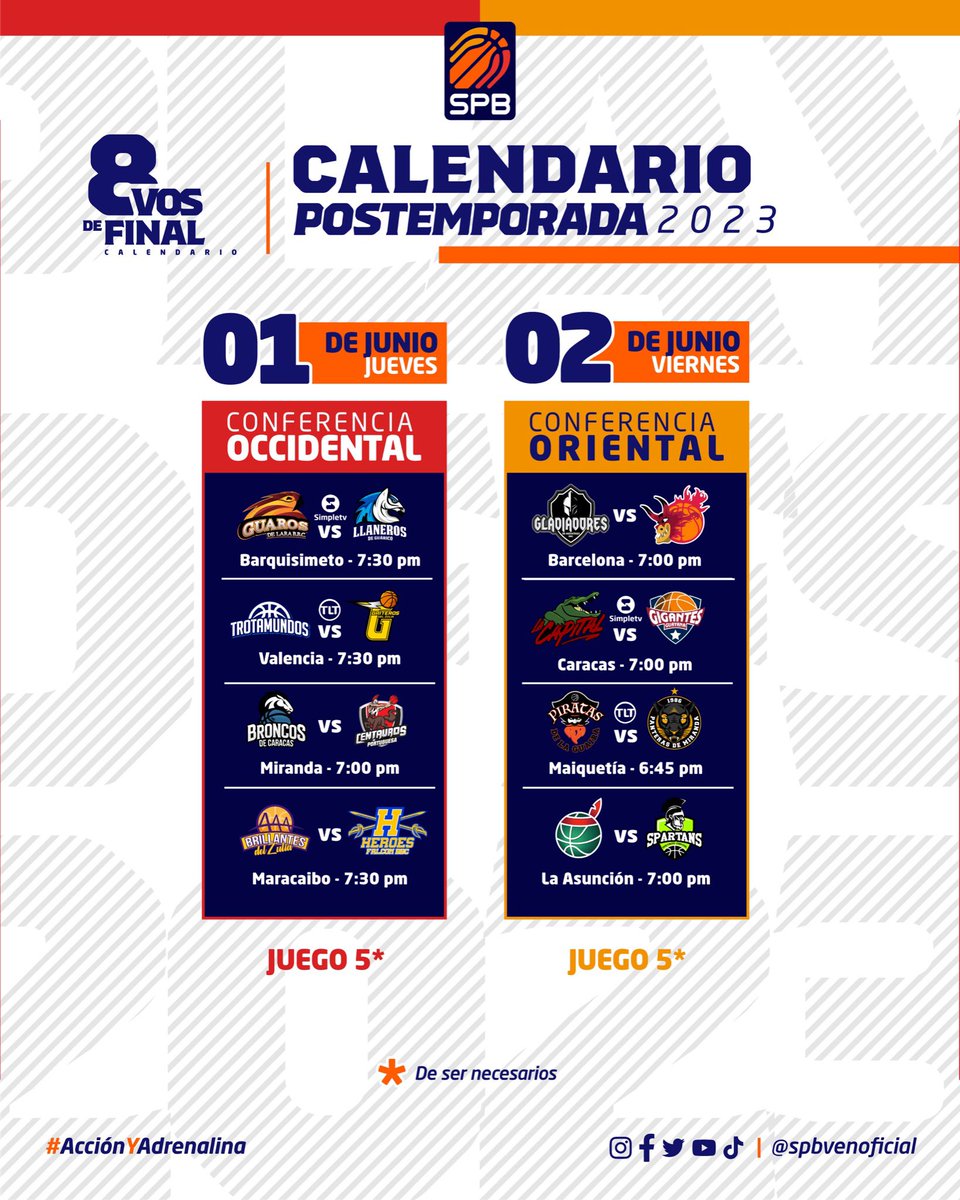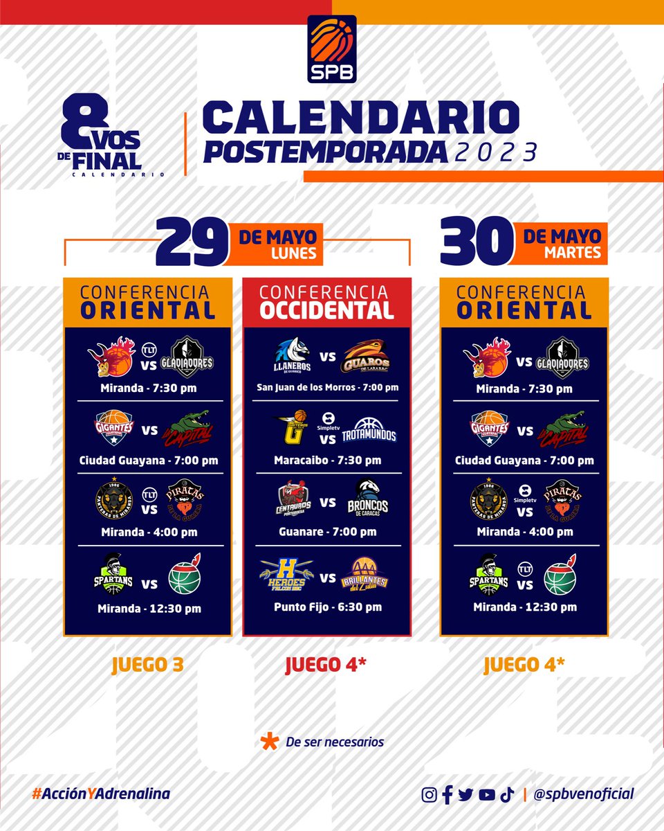 La fase regular de la SPB terminó este domingo con Guaros de Lara y Gladiadores de Anzoátegui como líderes de conferencia y será este miércoles 24 cuando se dé el salto inicial para los playoffs de la Conferencia Occidental, mientras que el jueves 25 lo hará la Conferencia Oriental.