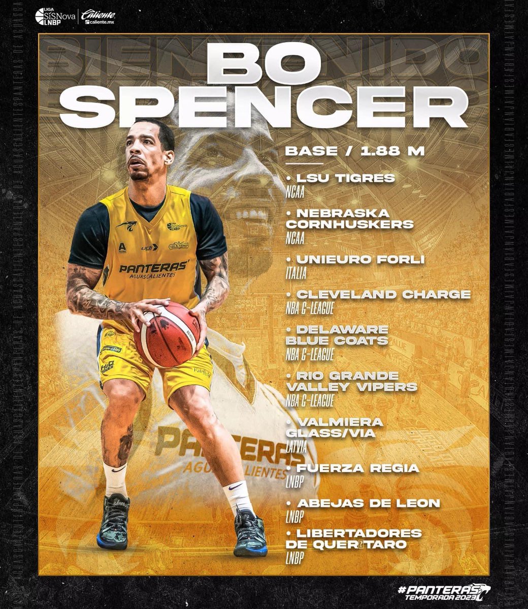 El Club Panteras de Aguascalientes confirmó la contratación de el talentoso armador Bo Spencer para la temporada 2023 en la Liga Sisnova LNBP varonil.